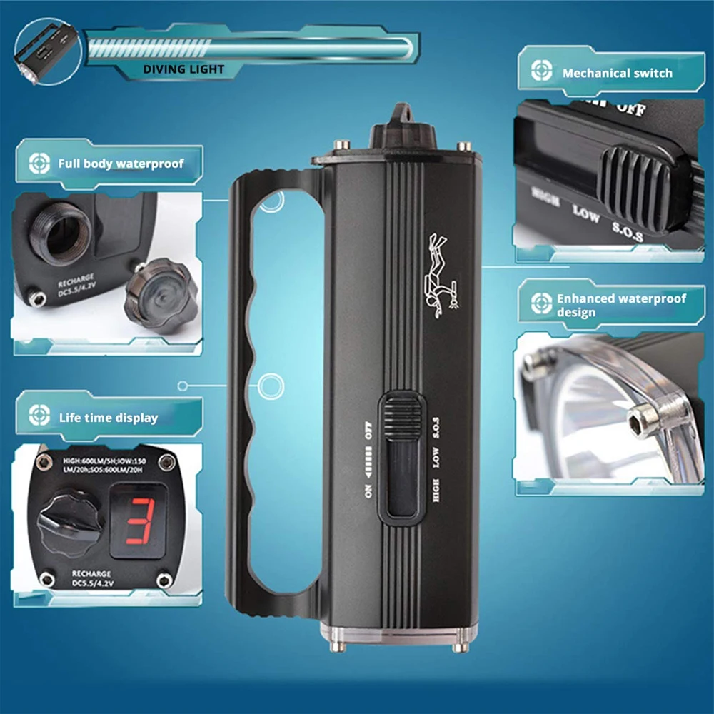 Эквивалент других дешевых фонарей для дайвинга, этот фонарь для дайвинга имеет истинную глубину 100 метров под водой, настоящий IPX-8 водонепроницаемый материал, поэтому вам не придется беспокоиться о том, что вода проникает в фонарик и наносит ущерб. Для вашего подводного опыта, пожалуйста, не тратьте небольшое количество денег, чтобы купить дешевый фонарик для дайвинга.