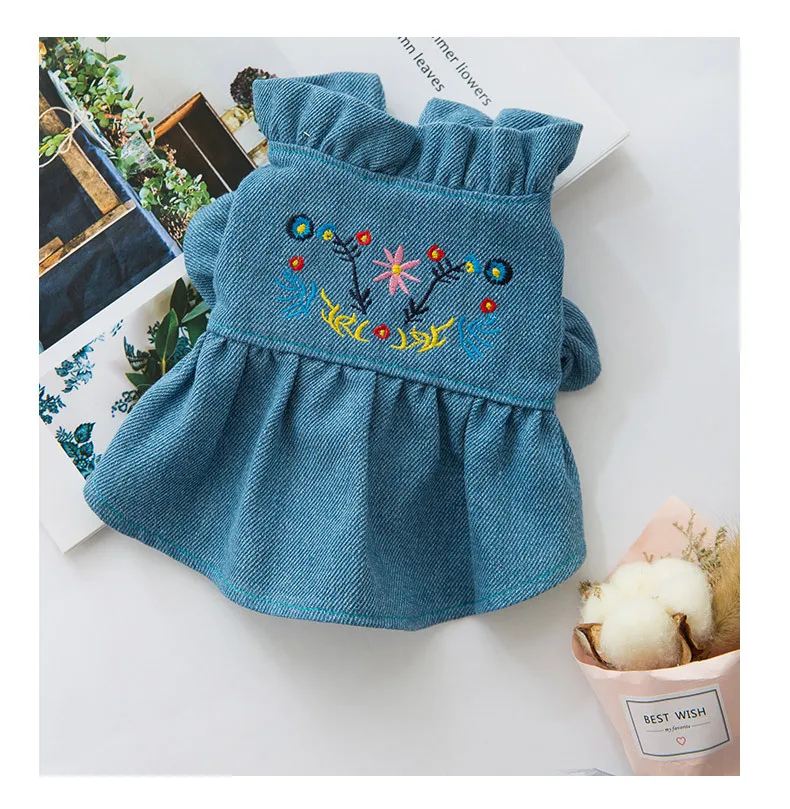 Puff sleeve denim skirt dog clothes pet cat dog coat puppy Christmas Easter clothes Chihuahua bulldog dog pet summer skirt