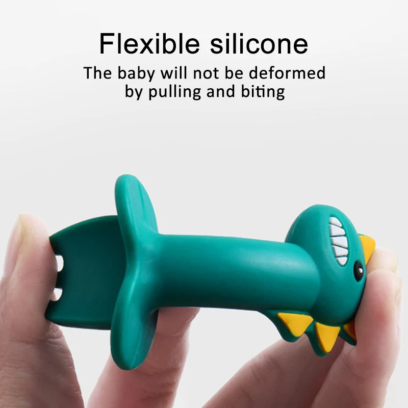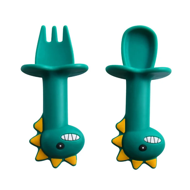 Детская обучающая набор ложка и вилка легкая ложка с короткой ручкой Мягкая силиконовая утварь Прорезыватель игрушка Кормление столовые приборы ложка с динозавром посуда