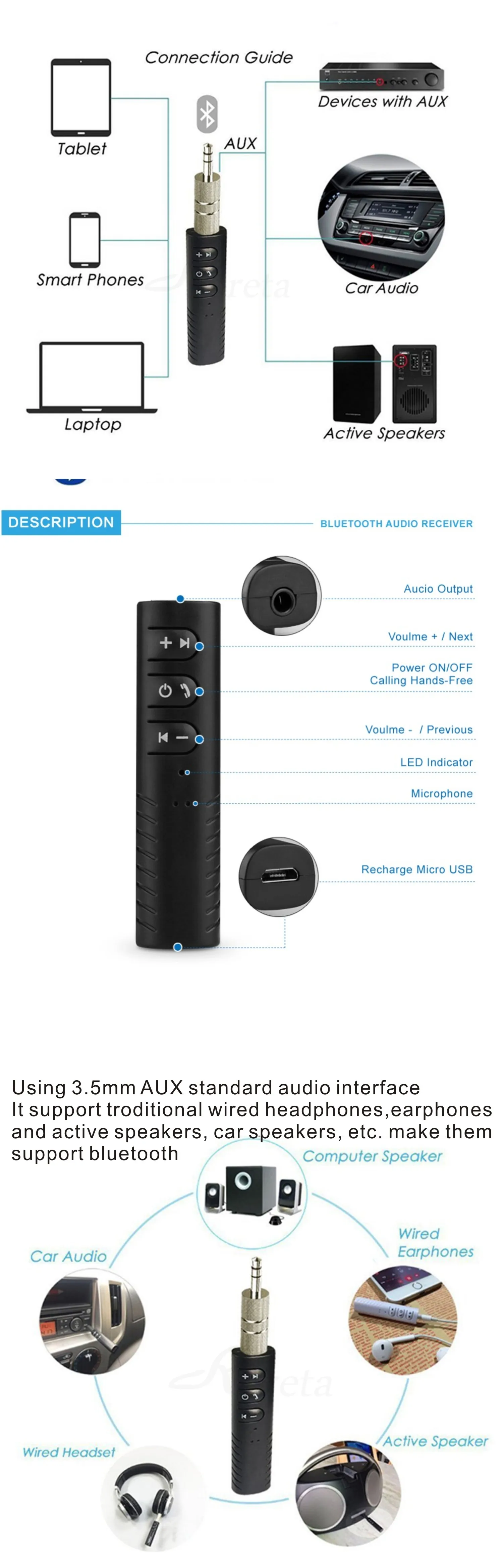 Характеристики продукта: bluetooth-приемник, автомобильный bluetooth-приемник, автомобильный bluetooth-приемник, aux Bluetooth приемник, аудио адаптер