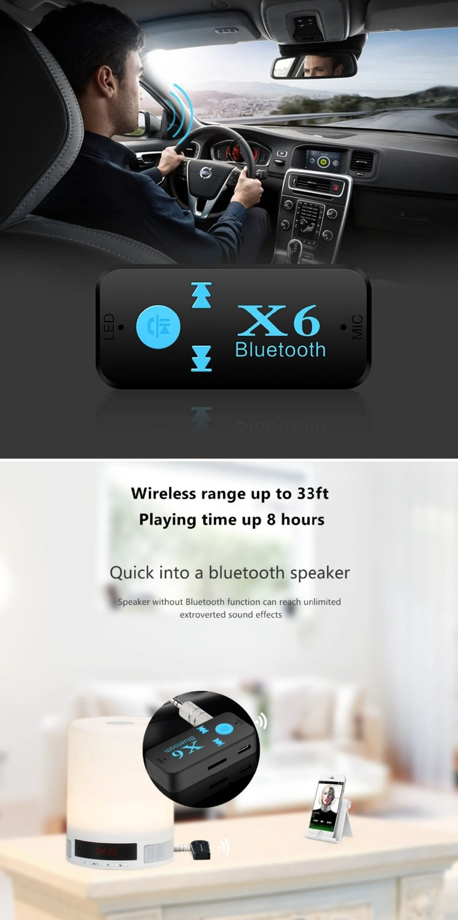 C122Особенности:Простота в эксплуатации: Просто подключите динамик/гарнитуру к нашему устройству, немедленно превратите динамик/гарнитуру в модный беспроводной bluetooth-динамик/гарнитуру.