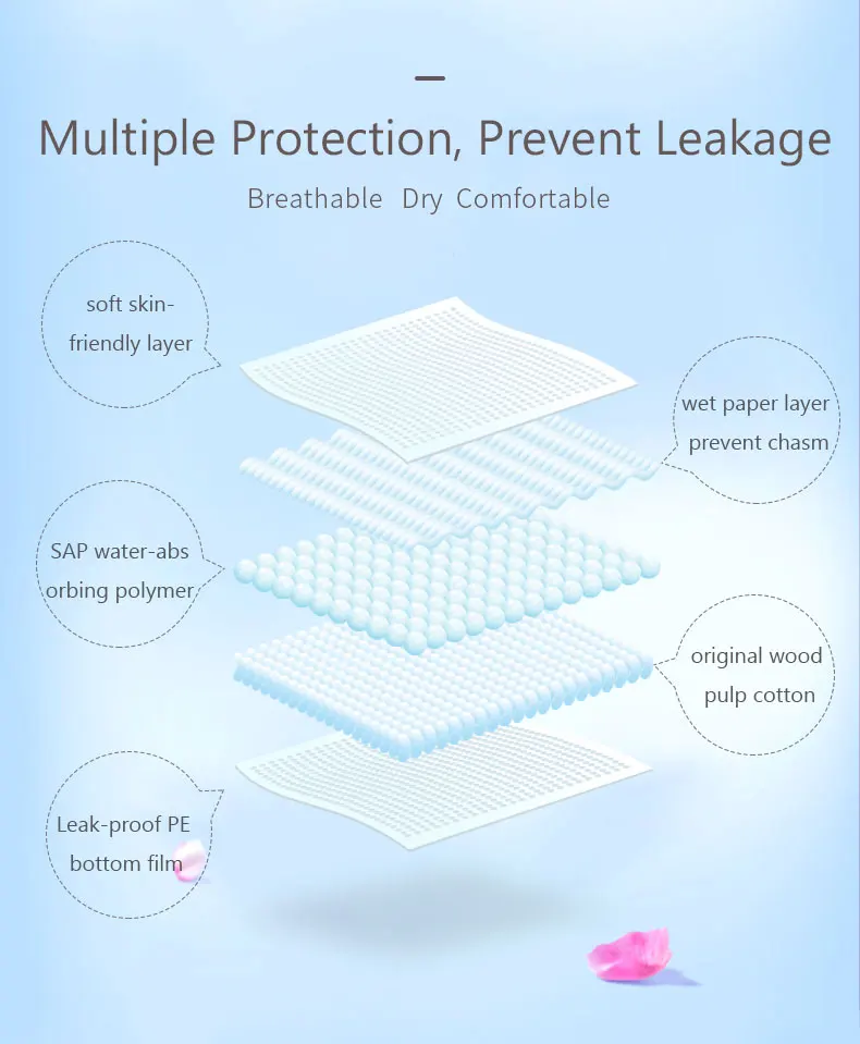 Материал изделия: полимер, поглощающий воду, оригинальный хлопок из древесной массы, герметичная Нижняя пленка из полиэтилена