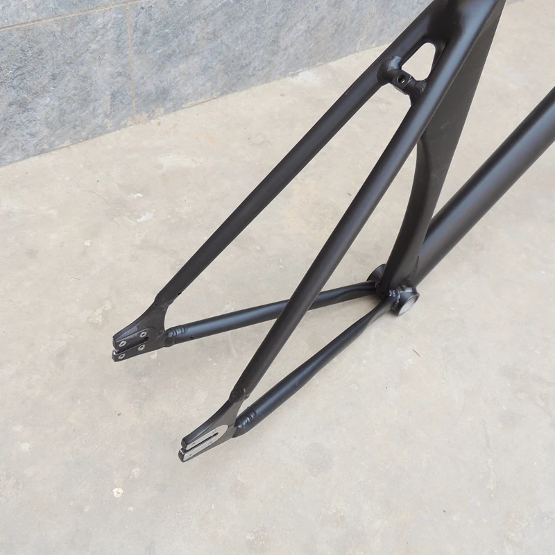 Односкоростная рама для дорожного велосипеда Рамка: головная трубка 44*120 мм прямая трубка Размер оправы: 520 мм Луч: 530 мм Пять звеньев: 68 мм Задняя вилка: ширина 120 мм Вес: 1998 грамм Подседельная труба: 250 мм в длину Вес: 368 грамм Передняя вилка: верхняя труба 28,6*33*187 мм Нижняя вилка: ширина 100 мм Вес: 580 грамм