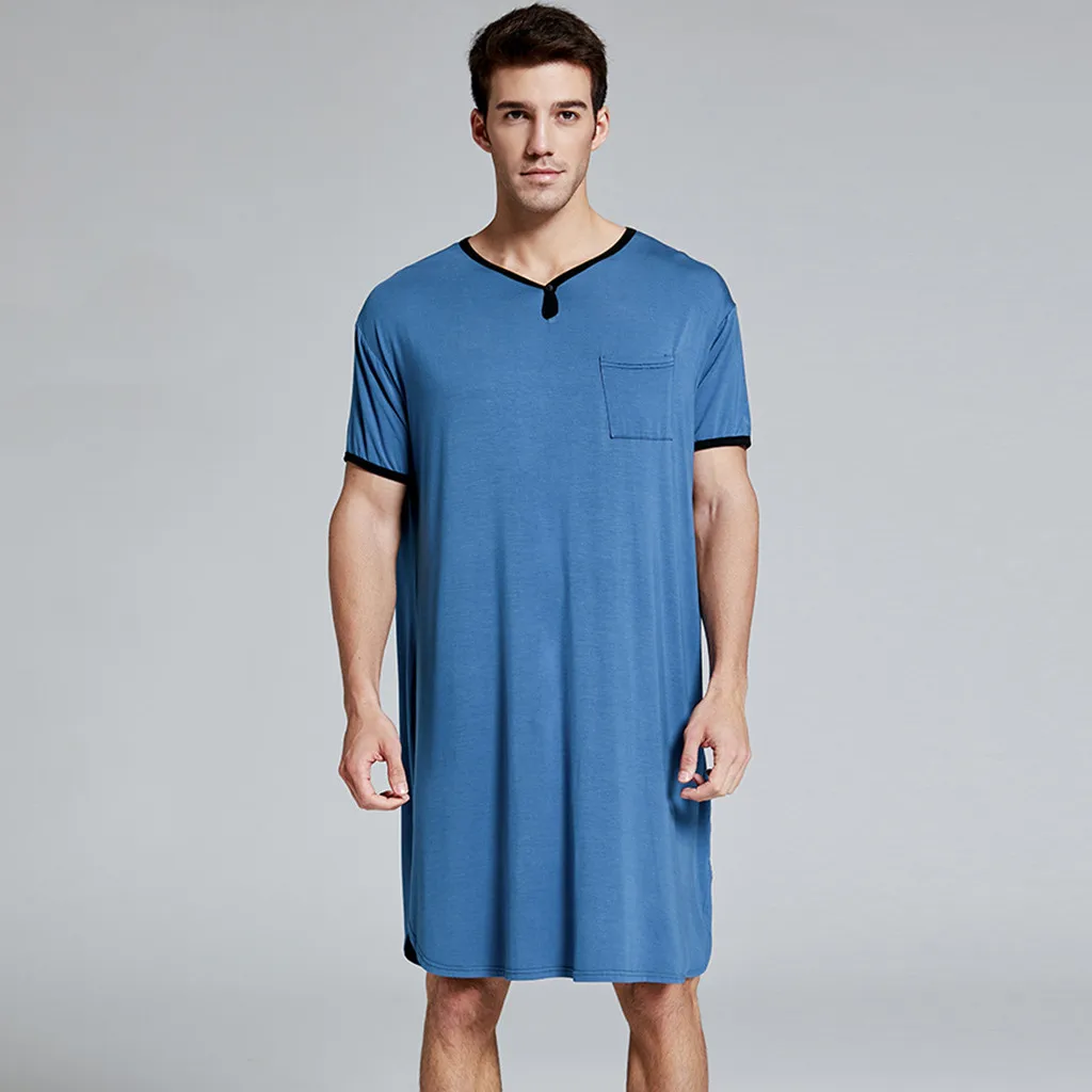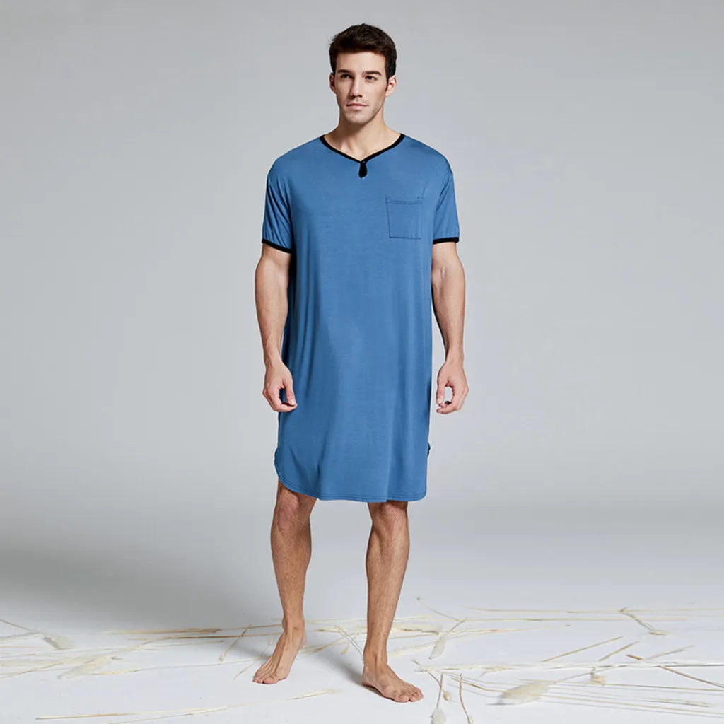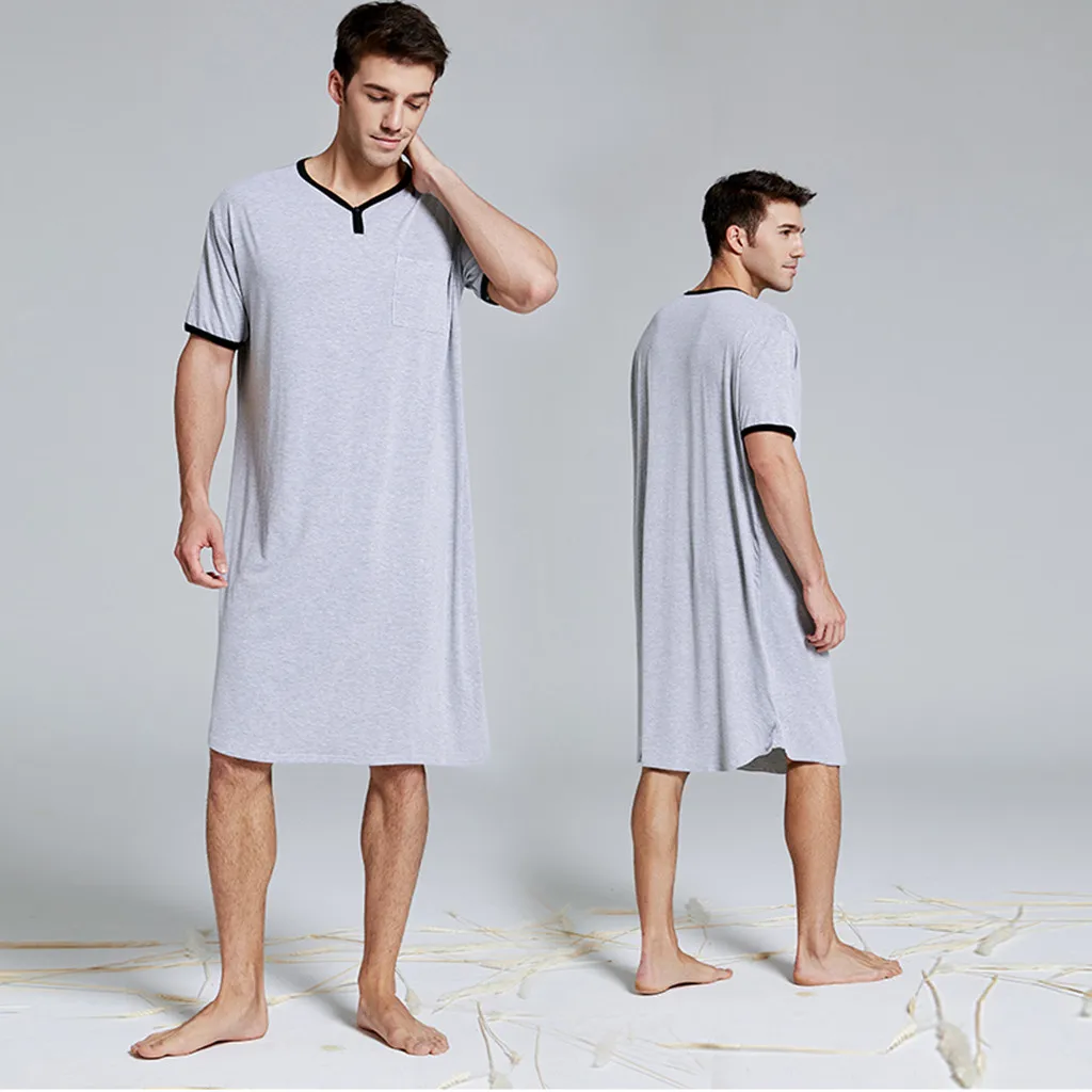 Отзывы о 2020 Мужская одежда для сна длинная ночная рубашка с коротким рукавом мягкая