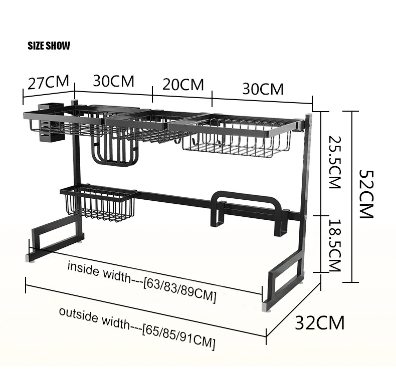 Бренд: NETEL Размер: 63/83/89 см длина Материал: нержавеющая сталь 304, устойчивая к ржавчине Способ установки: сделай сам, бесплатная доставка Тип хранения: посуда/миски/мыло/фрукты и так далее Популярные элементы: чернильный ветер Стиль: американский Примечание: внутренняя ширина ---[63 см] не включает стеллаж для фруктов ~~