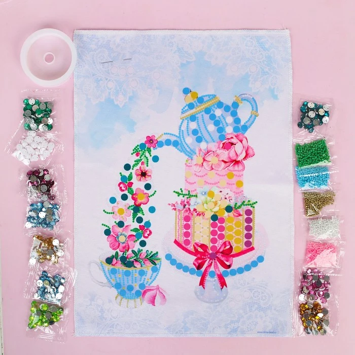 Вышивка стразами и бисером "Чаепитие", 35×25 см