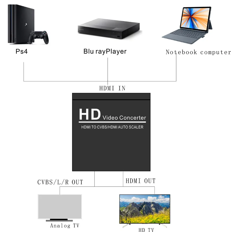 Отзывы о Преобразователь с HDMI на CVBS AV/HDMI преобразователь NTSC PAL TV формата HD видео RCA 1080P для VHS