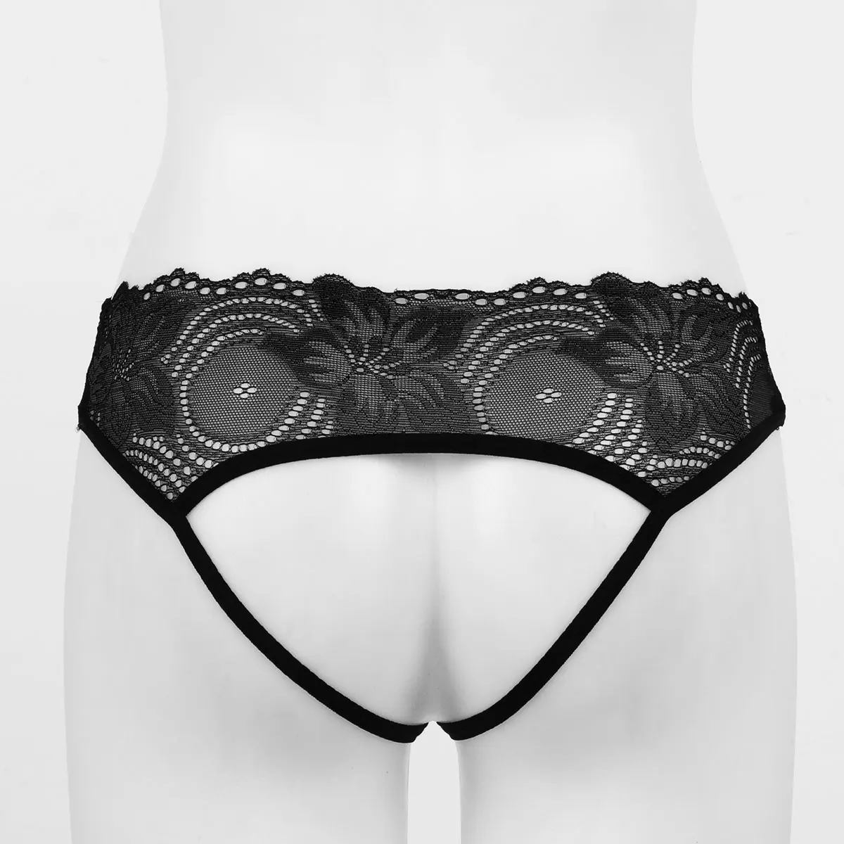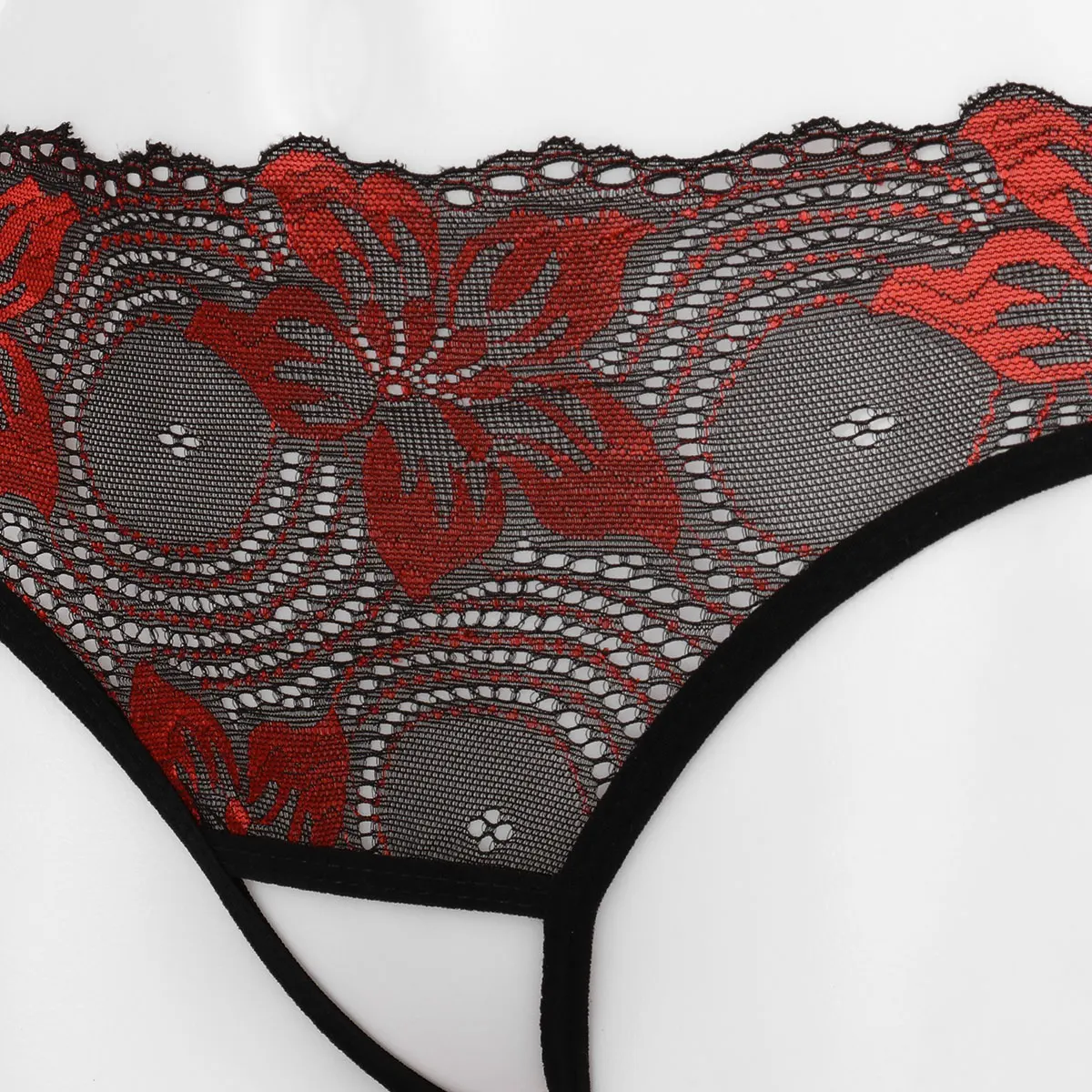 Низкая посадка с удобной эластичной резинкой на талии, прозрачное кружево с цветочным узором, без косточек.