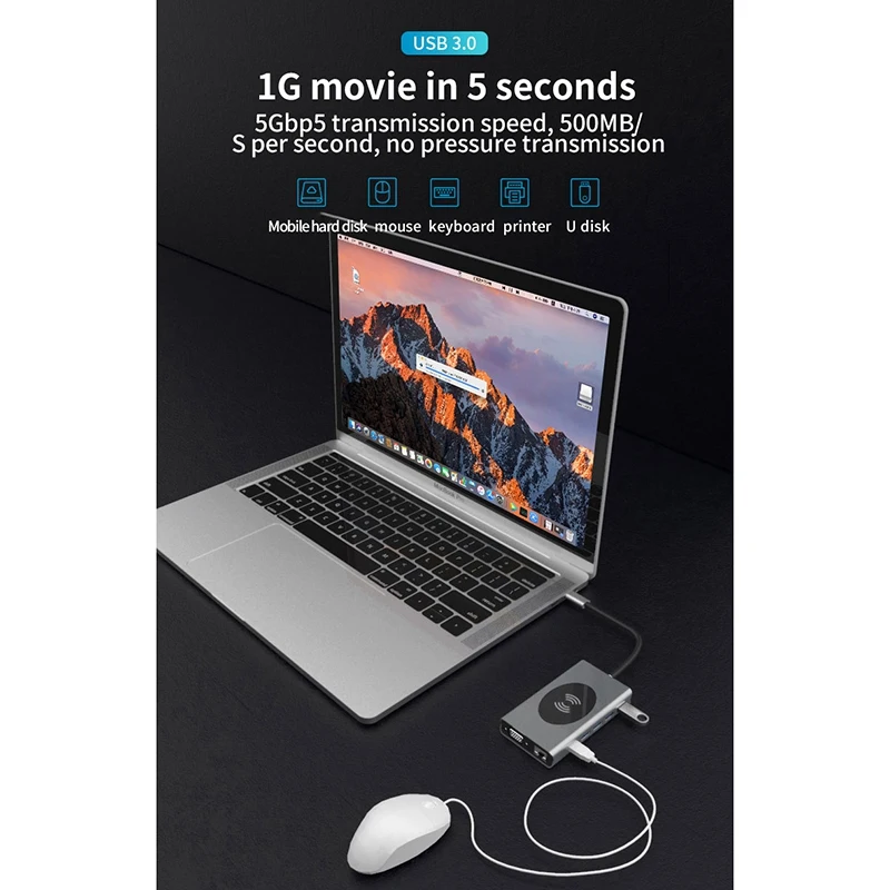 Супер Скоростной концентратор USB C: Мгновенный стабильный доступ к Интернету с портом Ethernet 1000M (поддерживает скорость 10/100/1000 Мбит/с). Приносит вам фильм 1G в течение нескольких минут, ультра-быстрая передача данных со скоростью 5 Гбит/с для 2 портов USB 3,0, слот для sd-карт и слот для tf-карт в комплекте. Дополнительные 2 порта USB 2,0 идеально подходят для клавиатуры и беспроводного устройства. Гарантируйте стабильное соединение с WiFi.