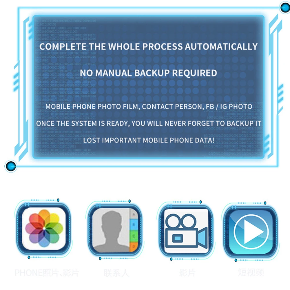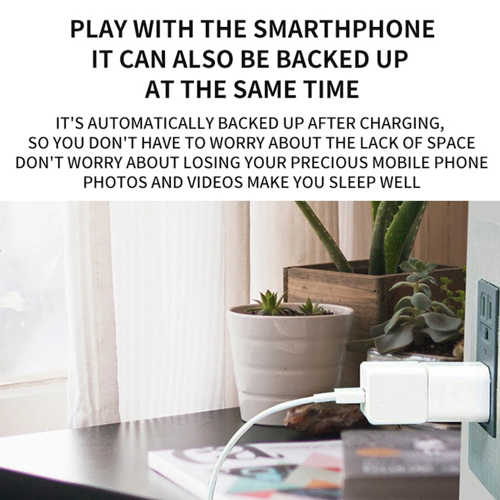 Который просто подключен к задней части зарядного устройства телефона, подключите источник питания снова и наслаждайтесь автоматической функцией резервного копирования немедленно.