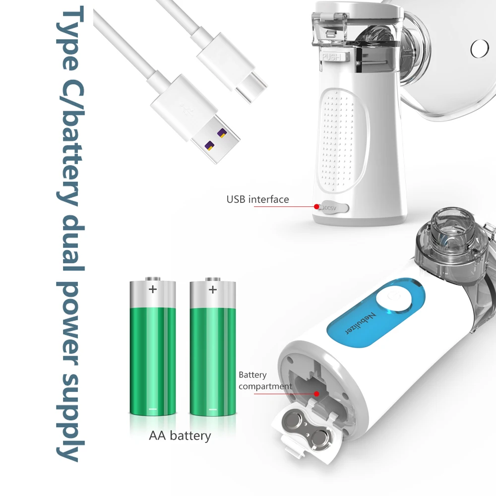 ♥【Аккумулятор или usb-аккумулятор 】 он может питаться от 2 батареек AA (не входят в комплект) или непосредственно от подключаемого адаптера с usb-кабелем (в комплект входит кабель). Светодиодный индикатор показывает работу. Это полностью Профессиональный Ингалятор, который вам нужен для максимальной выгоды и простоты использования.