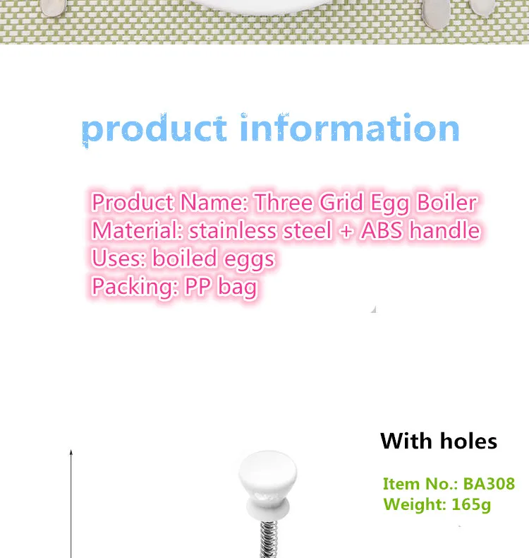 Варите 3 яйца за раз, прост в использовании, очень подходит для вас, чтобы подготовить завтрак. С этим артефактом вареного яйца вы будете наслаждаться вкусными низкокалорийными яйцами-пашот чаще. Конструкция легко собирается и разбирается, легко варится, легко высвобождается вареные яйца и легко моется. Изготовлен из нержавеющей стали и оснащен длинной пружинной ручкой. Посудомоечная машина безопасна или проще мыть вручную после разборки. Цвет: серебристый Материал: нержавеющая сталь и АБС-пластик Размер: как показано Этот вид яичной плиты может положить яйца в кипящую воду, чтобы сделать форму яйца хорошей и легкой для приготовления и очистки. Функция наличия пружинной ручки легко выпустит идеальное яйцо. Изготовлено из прочной нержавеющей стали, антикоррозийная, Просто положите его примерно в полдюйма кипятка (медленно Кипятите маленькими пузырьками). Ключ заключается в том, чтобы найти точку для кипения, а затем положить яйца в воду без кипения, но достаточно горячей, чтобы держать браконьеров горячими. Аккуратно взбивайте яйца в каждую чашку. Нет необходимости в сливочном масле. Готовьте до тех пор, пока вы не сделаете это так, как вам нравится, а затем Поднимите артефакт из кастрюли. Вытяните на пружинной ручке, чтобы выпустить яйцо на тарелку, тост или рулон для завтрака. Посылка содержание 1 * Стальная сковорода для яиц Только вышеуказанная посылка, другие товары не включены. Примечание: светильник и различные дисплеи могут привести к тому, что цвет товара на изображении будет значительно отличаться от реального. Допустимая погрешность измерения составляет +/- 1-3 см.