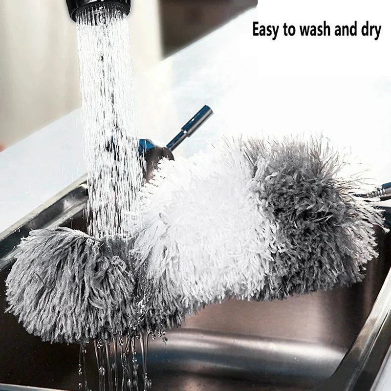 Пыльник легко чистить. Просто сдвиньте голову с телескопической палочки, ручная стирка с теплой или низкой тепловой водой! Поверните полюс, чтобы микрофибра была пушистой. Поместите в проветриваемое место для сушки. Мы также разработали основание удлиняющего стержня с подвесным отверстием, чтобы сделать хранение очень удобным для пространства.