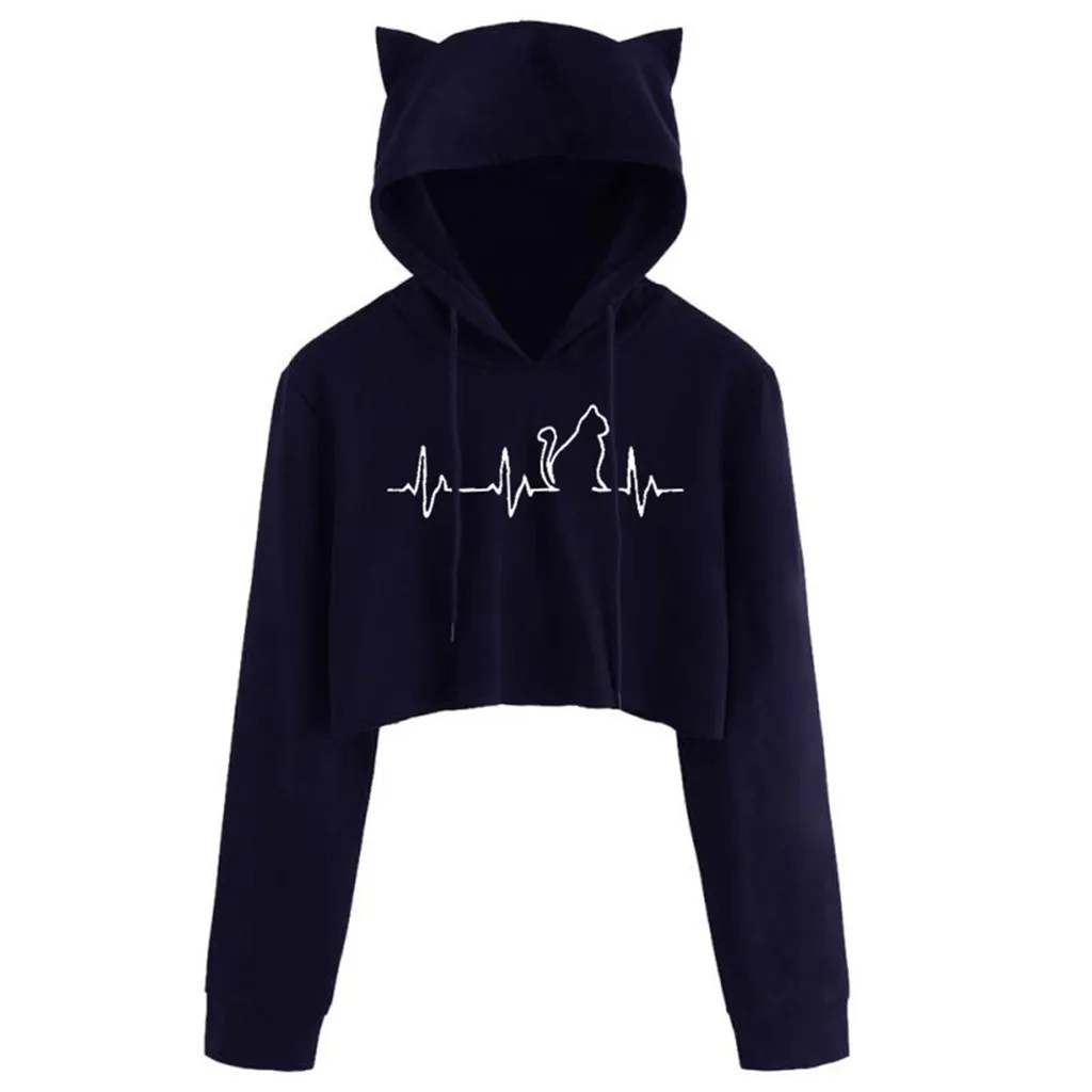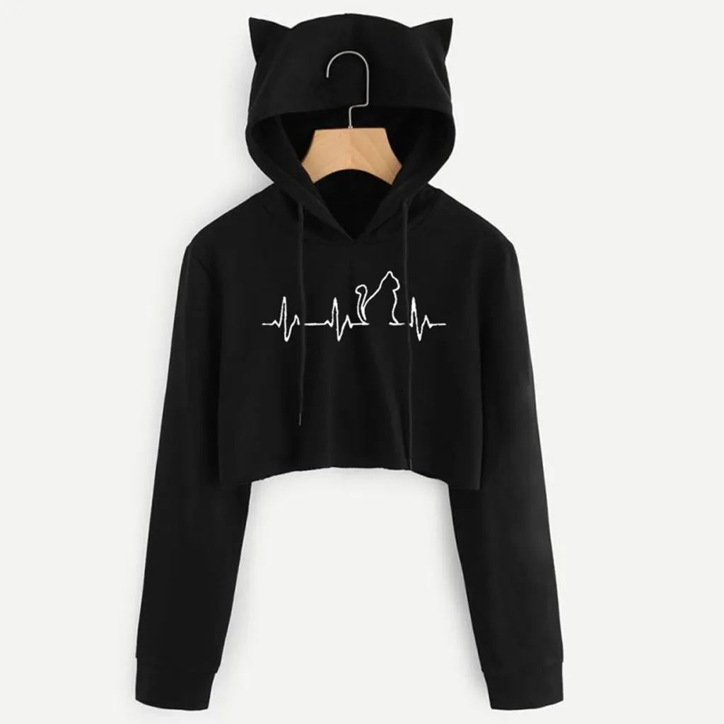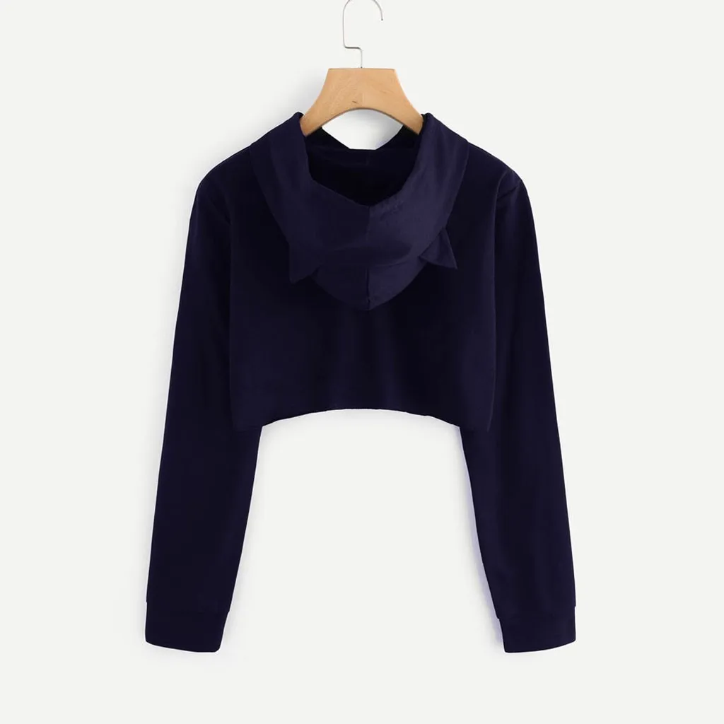 Женская толстовка с капюшоном и длинными рукавами с кошачьими ушками; Пуловер с капюшоном; Топы; Блузка