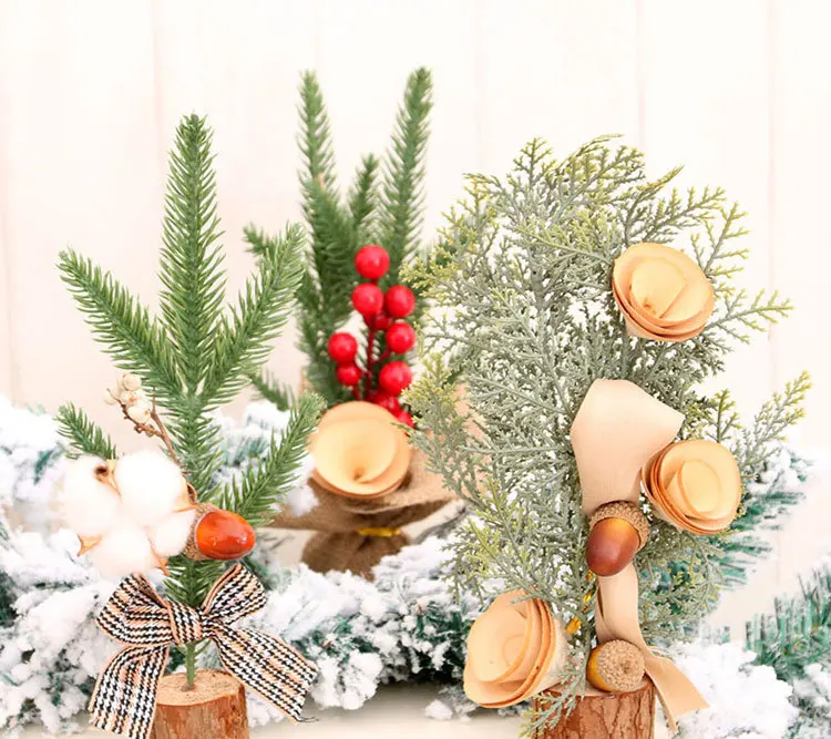 DIY Мини Рождественская елка, искусственные сосновые цветы, рождественские кедровые украшения для домашнего фестиваля, украшения 2021, детские новогодние подарки