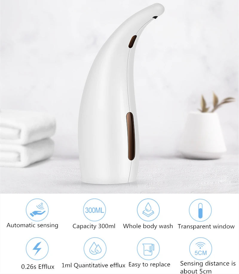 Примечание: Если жидкость не обнаружена в первый раз, пожалуйста, прикоснитесь к соплу пальцами Водонепроницаемый дизайн, моющиеся, анти-Инфракрасные помехи. Не нужно касаться насоса, просто положите руку на датчик, мыло, которое вам нужно будет отправить через инфракрасный датчик автоматически. Держите ваши семьи вдали от микробов и сохраняйте здоровье. Автоматический датчик дозаторов мыла всегда выделяет определенное количество мыла для предотвращения передозировки и отходов. Индуктивное расстояние, чтобы почувствовать расстояние от порта запуска до руки 2-3 дюймов, является подходящим расстоянием. После 2 секунд интервала, будет выпущена вторая жидкость (если ладонь остается более 2 секунд). Прежде чем заменить новый аккумулятор, сначала нажмите выключатель питания базы, установите новый аккумулятор и измените крышку аккумулятора, нажмите кнопку снова. Автоматические диспенсеры для мыла с видимым окошком спереди, на котором показаны уровни жидкости, вы можете вовремя добавить дезинфицирующее средство для рук. Вы можете взять его в любом месте из-за небольшого размера и портативности. Его емкость составляет 200 мл. Высококачественные диспенсеры для мыла прекрасно сочетаются с домашними, больничными, детскими садами и т. д. Характеристики: Тип изделия: дозатор для мыла Материал: АБС-пластик Размер: 72x233x14 5 мм/2.9x9.1x5.7 дюймов Цвет: Marbling Емкость: 300 мл Номинальное напряжение: DC6V(1.5Vx4)(батарея в комплект не входит) Количество: 1 шт. Посылка включает в себя: 1 дозатор для мыла 1 x Инструкция на английском языке Обратите внимание: -Если он не ощущает вашу руку и без оттока жидкости, это может быть слишком высокая концентрация жидкости, вы можете разбавить ее, чтобы решить эту проблему. -Каждый дозатор мыла проходит проверку жидкости перед отправкой фабрики, которая может иметь небольшое количество остатков воды, оставленных на бутылке, пожалуйста, не волнуйтесь, продукт абсолютно новый.