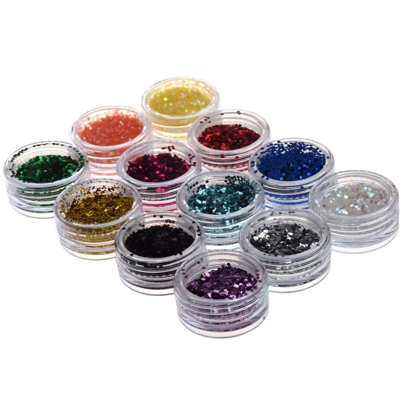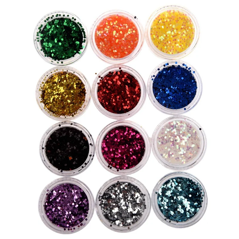 Отзывы о 12 шт цветной акриловый УФ гель для ногтей блестки шесть углов и 1 коробка Стимпанк