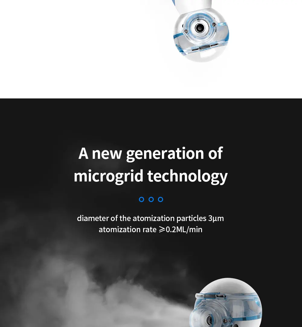 1. Новое поколение технологии micro-grid, с крупным и равномерным туманом, распыляющим мелкие частицы, со средним размером частиц до 3мкм, и более адекватным усвоением лекарств;