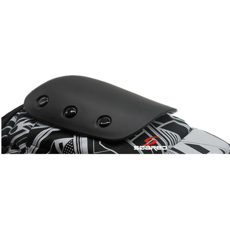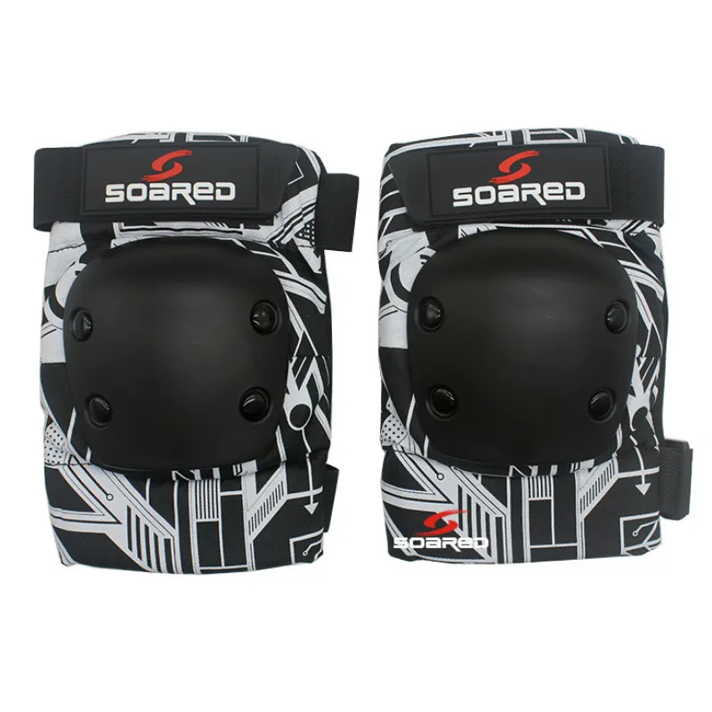 Защитное снаряжение большого размера, лучше носить наколенники снаружи брюк.