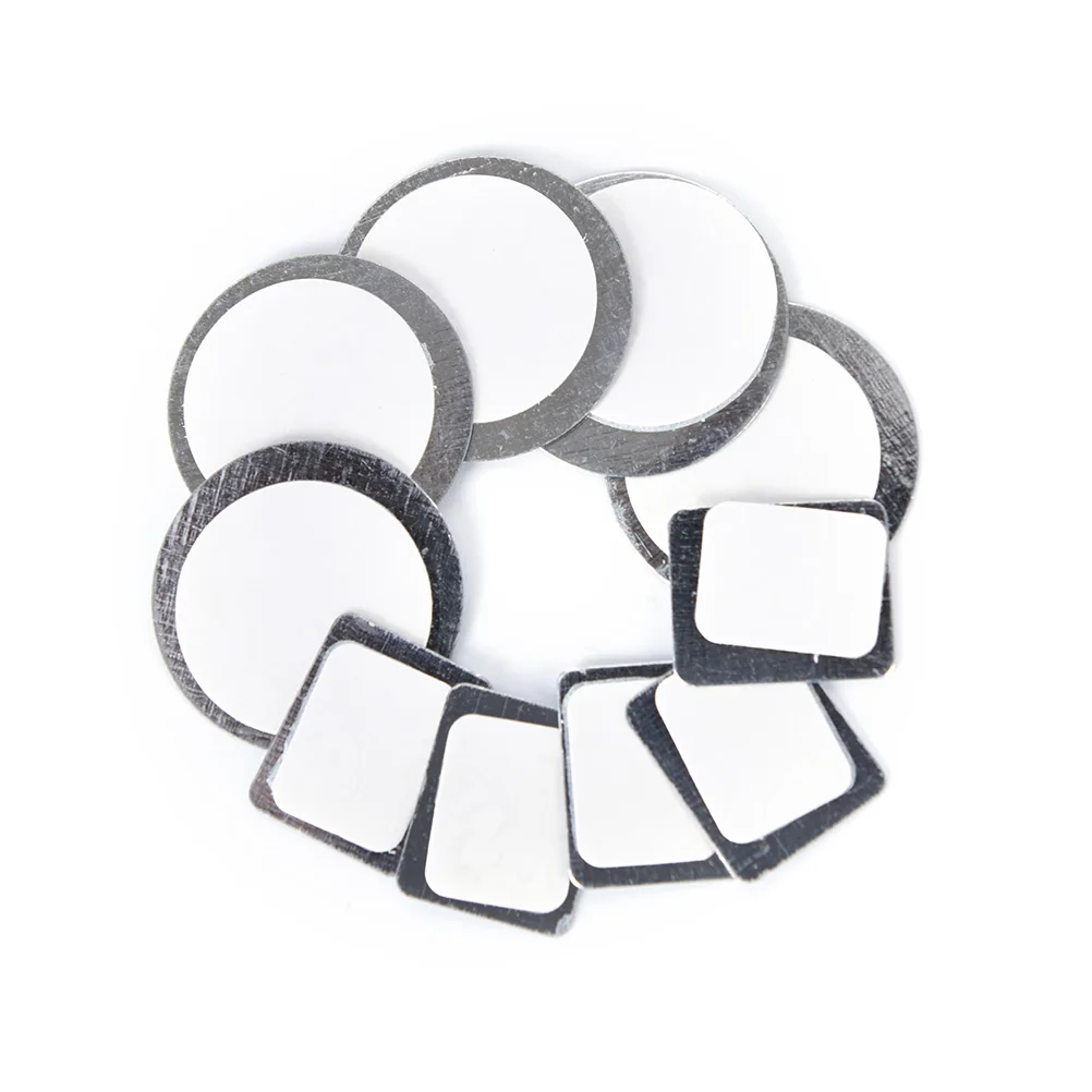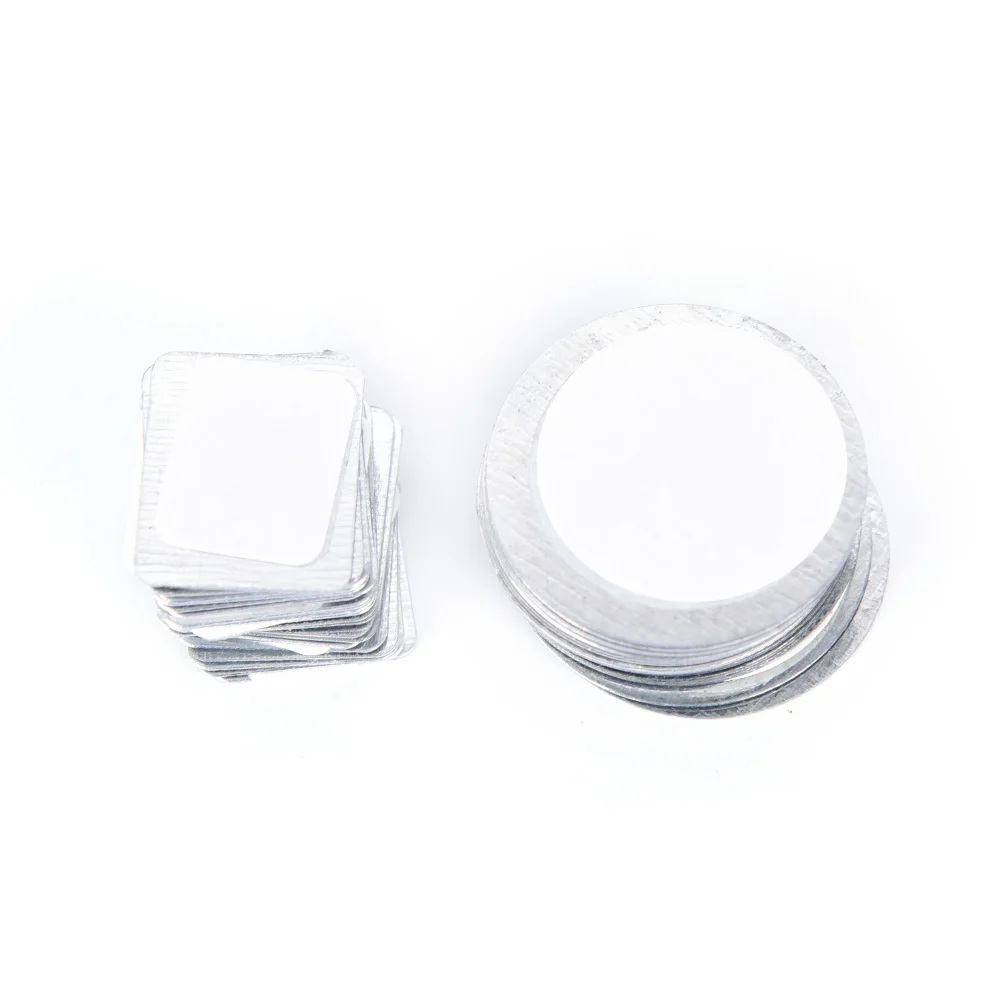 1. Круглые или прямоугольные металлические наклейки идеально подходят для теней, румян, бронзаторов и пудры, которые не предназначены для магнитных палитр.