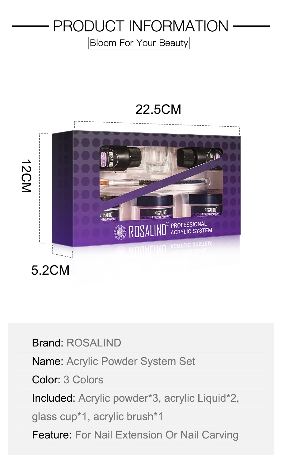 Акриловый порошок ROSALIND, полигель для ногтей, лак для ногтей, украшения для ногтей, Хрустальный маникюрный набор, набор, профессиональные аксессуары для ногтей