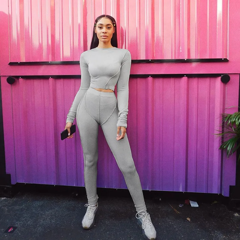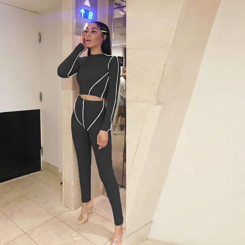Полосатый спортивный комплект из двух предметов с длинным рукавом, укороченный топ, леггинсы, штаны, спортивный костюм, модная женская одежда для фитнеса, тренажерного зала, тренировки, одежда для йоги