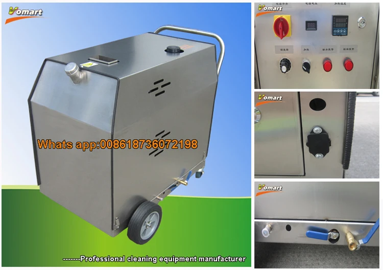 1) Quitck startOnly 60s для холодного запуска, быстрый запуск в режиме ожидания. 2) разделение воды и электричества 3) Регулируемая влажность/сухость 4) защита от перенапряжения 5) более высокое рабочее давление. 6) защита от замерзания 7) Экономия энергии и воды 8) небойлер для безопасного использования. Наша машина без бийлера, без взрыва.