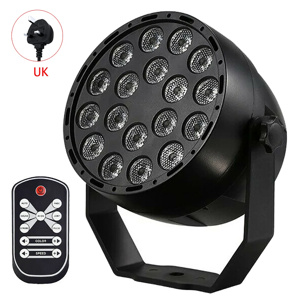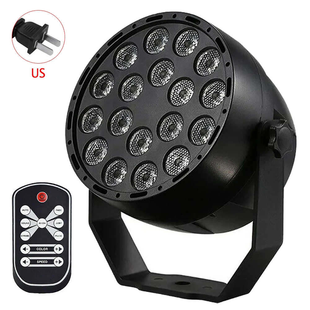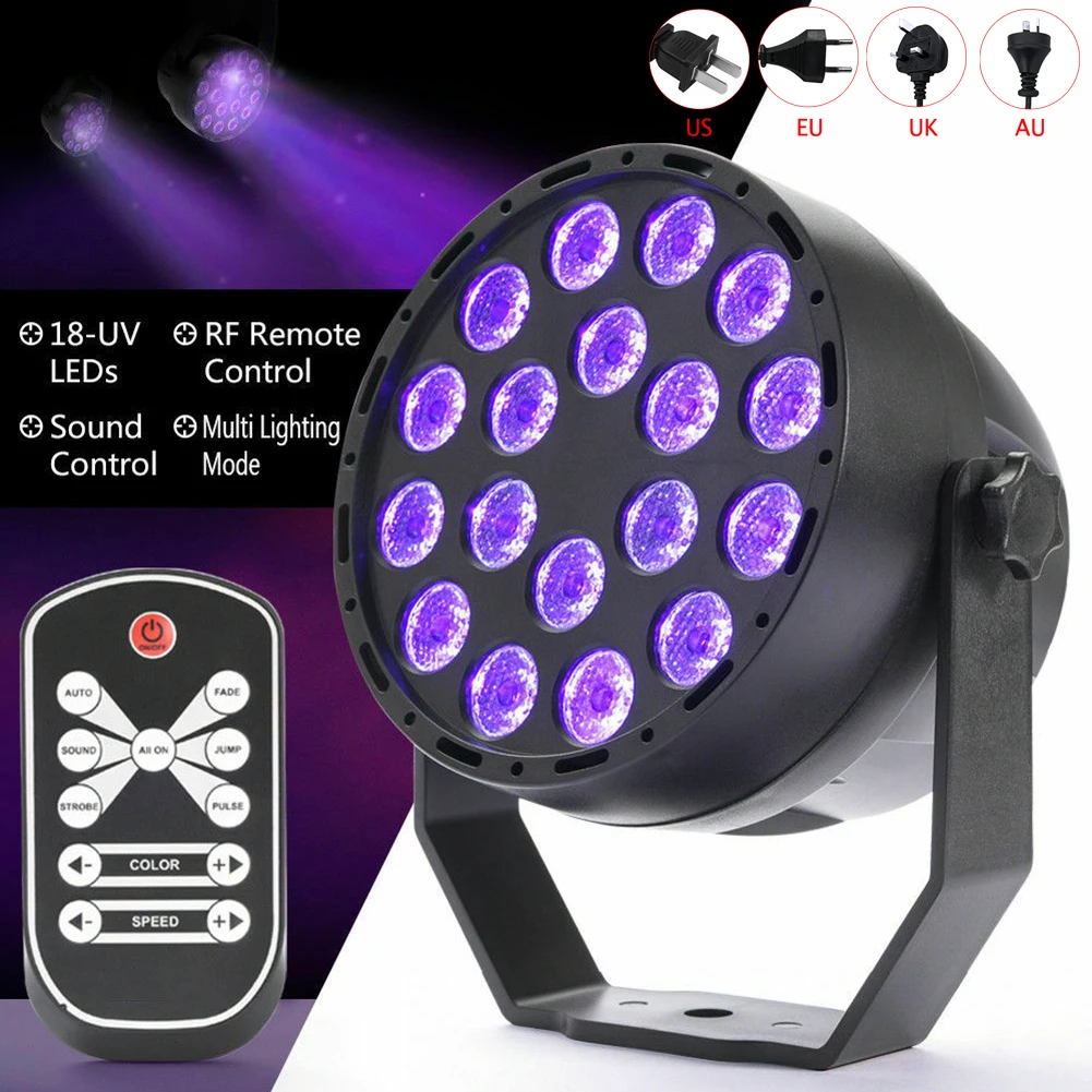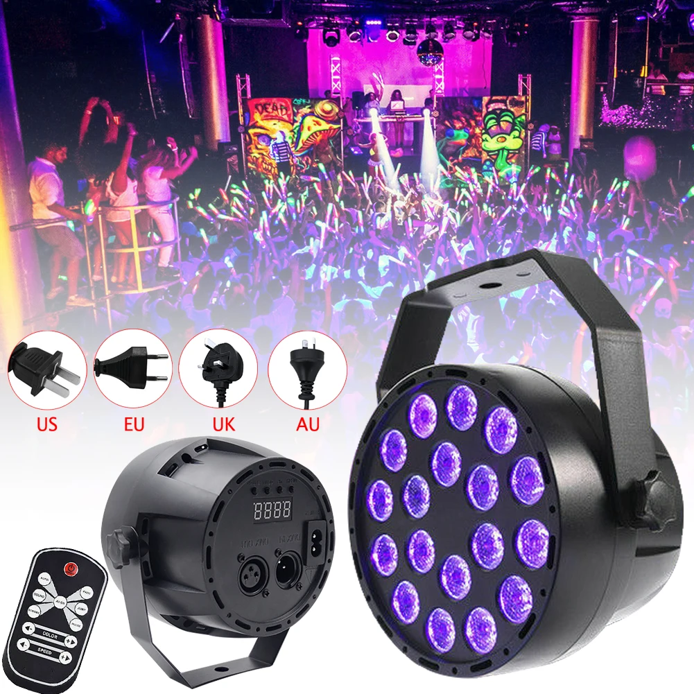 УФ Фиолетовый светильник 18LED Мини Вспышка сценический светильник Par Поддержка авто голосовой пульт дистанционного управления для KTV диско-бара дома рождественской вечеринки Характеристика:-18 УФ-светодиодный бисер может создать потрясающую атмосферу дома, сцены или вечерние. Представляем, как потрясающе ваш дом, когда вы наполнены очаровательными фиолетовыми лампами.