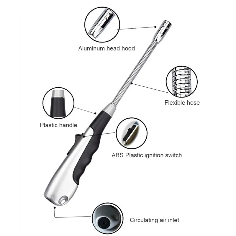 Особенности:Колено с поворотом на 360 градусов:Эта фонарь жигалка имеет гибкую трубку из нержавеющей стали на 360 градусов. Длинную ручную газовую зажигалку можно поворачивать по желанию для удобного использования и складывать под разными углами для удовлетворения различных потребностей в применении. Можно вращать, поворачивать и согнуть расширенную шею в любую сторону, что удобно и особенно