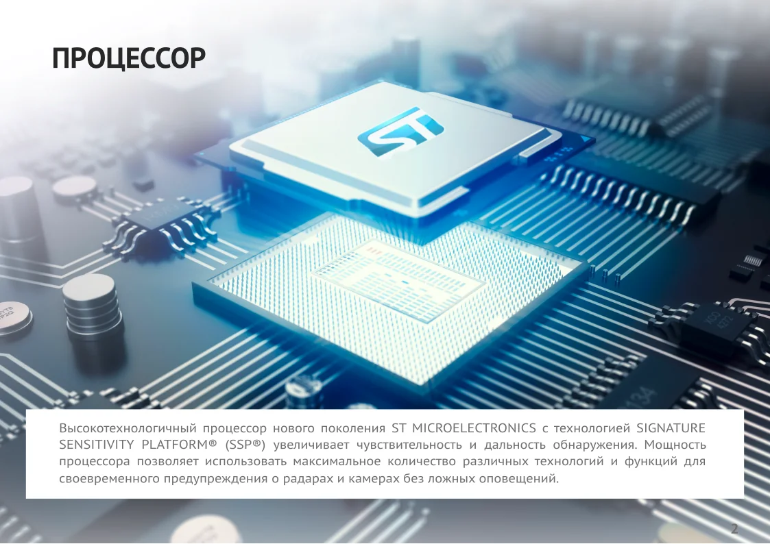 В устройстве установлен радарный модуль третьего поколения на базе высокопроизводительного процессора Quadro M7 ST MicroElectronics с технологией SSSP (SMART Signature Sensitivity Platform).