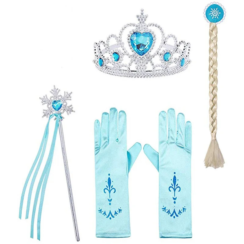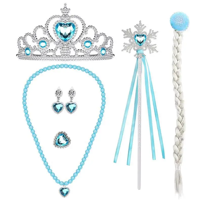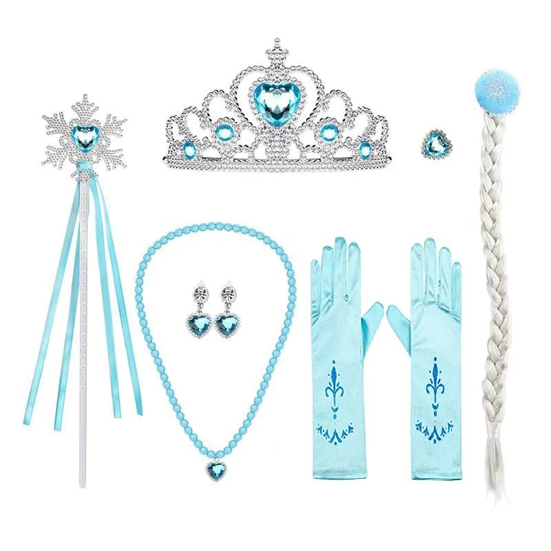 8 шт./лот, игрушки для девочек, принцесса Эльза, аксессуары для платья, Детский комплект ювелирных изделий, коса, корона, ожерелье, кольцо, серьги, палочка, перчатки