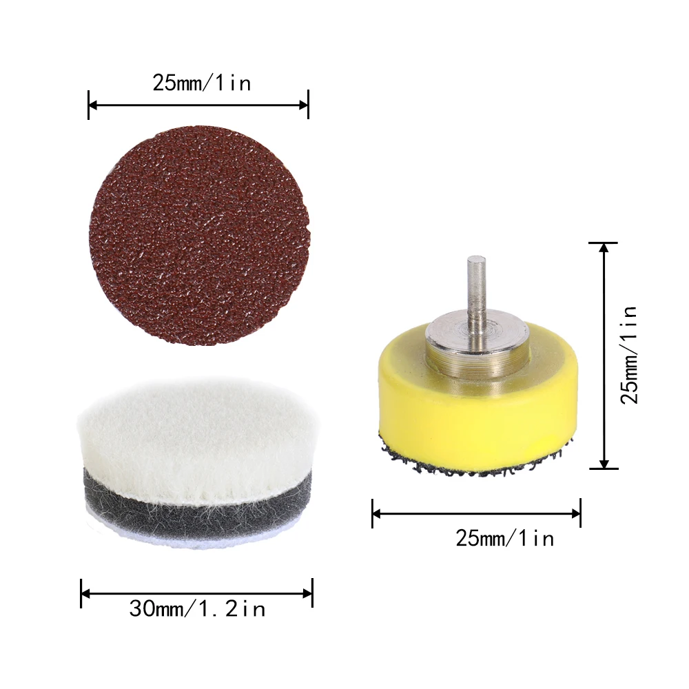 -Желтое Сверло X 1-Сменная полировка шерсти X 1-сменные шлифовальные напильники (#80 или #120 или #180) X 100
