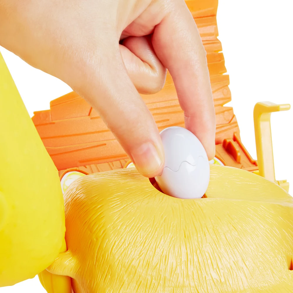 Как яйцо? Резиновый цыпленок? Взрывной курятник? О чем эта игра? Это Веселая игра для детей от четырех лет! Опустите штамп, а затем коснитесь грудной клетки курицы, количество раз, указанное на штампе, и вы услышите Забавный штрих. Если курица не откладывает яйца, поворот переходит к следующему игроку. Однако, если курятник открывается, курица поставит яйцо, которое вам придется сломать. Как чип упадал внутри яйца, со стороны цыпленка вверх или со стороны яйца вверх? Если он упадет с яйцом, вам не везет, и поворот переходит к следующему игроку. Если он упадет со стороны цыпленка, вы выиграете чип с цыпленком. Затем курица перезапускается, и игра идет до тех пор, пока игрок не получит шесть плиток с цыплят. Игрок, который получает больше фишек с цыплятами, является победителем.