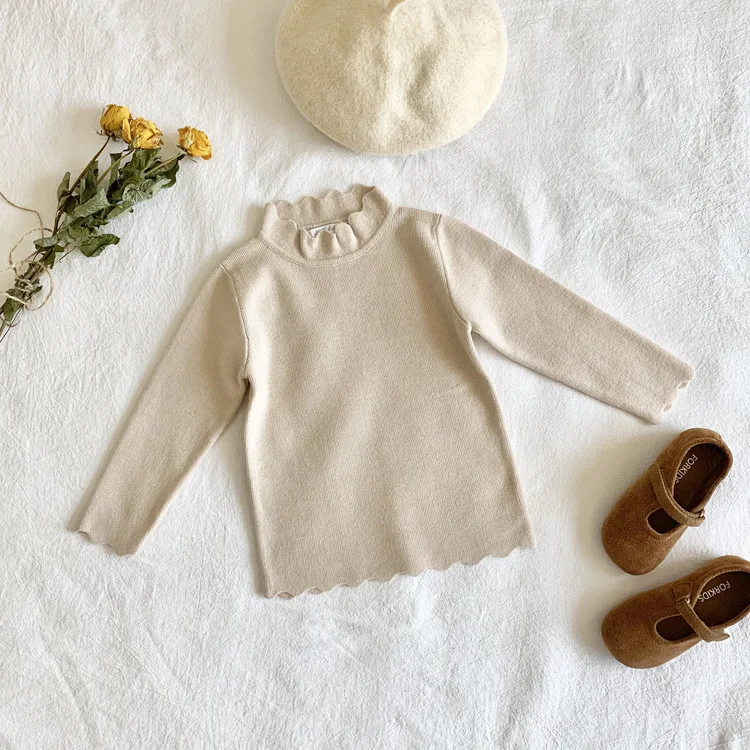 Осенний вязаный свитер с длинными рукавами и оборкой для девочек; Новинка 2020 года; Зимняя детская одежда; Пуловер для маленьких девочек; Свитера