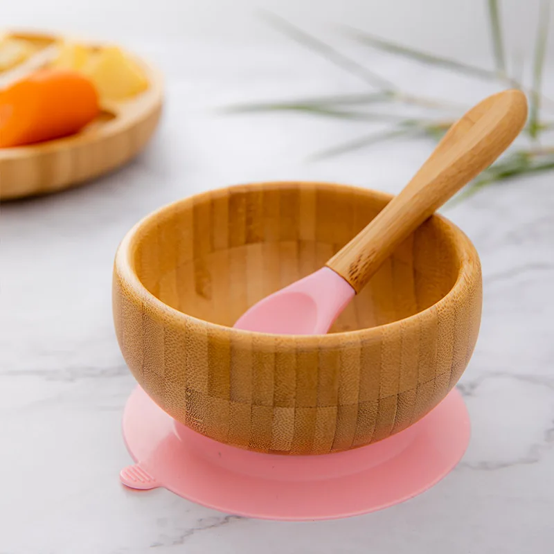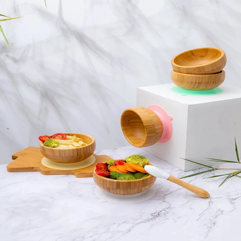 1 Набор силиконовых чаш для кормления детей, Бамбуковая ложка, обучающая посуда для малышей, присоска для детей, детская посуда
