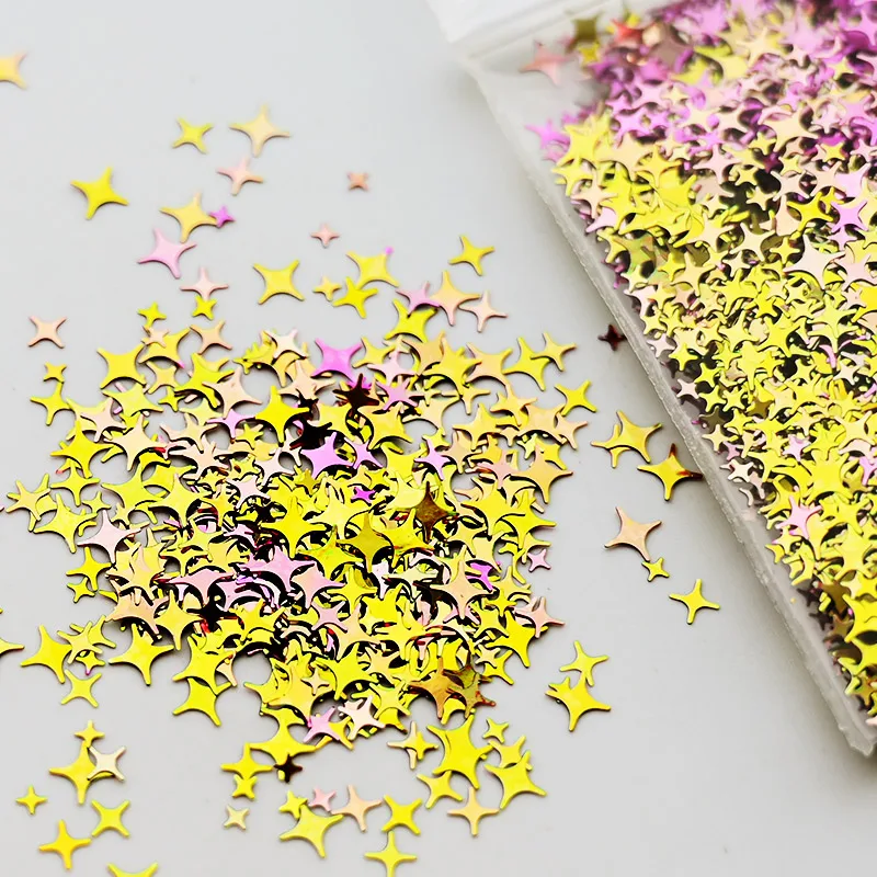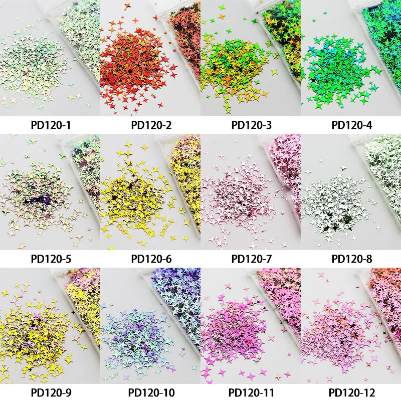 Отзывы о 10 г четырехконечная звезда хлопья 3D блестки порошок 2/4/5 мм Хамелеон для ногтевого