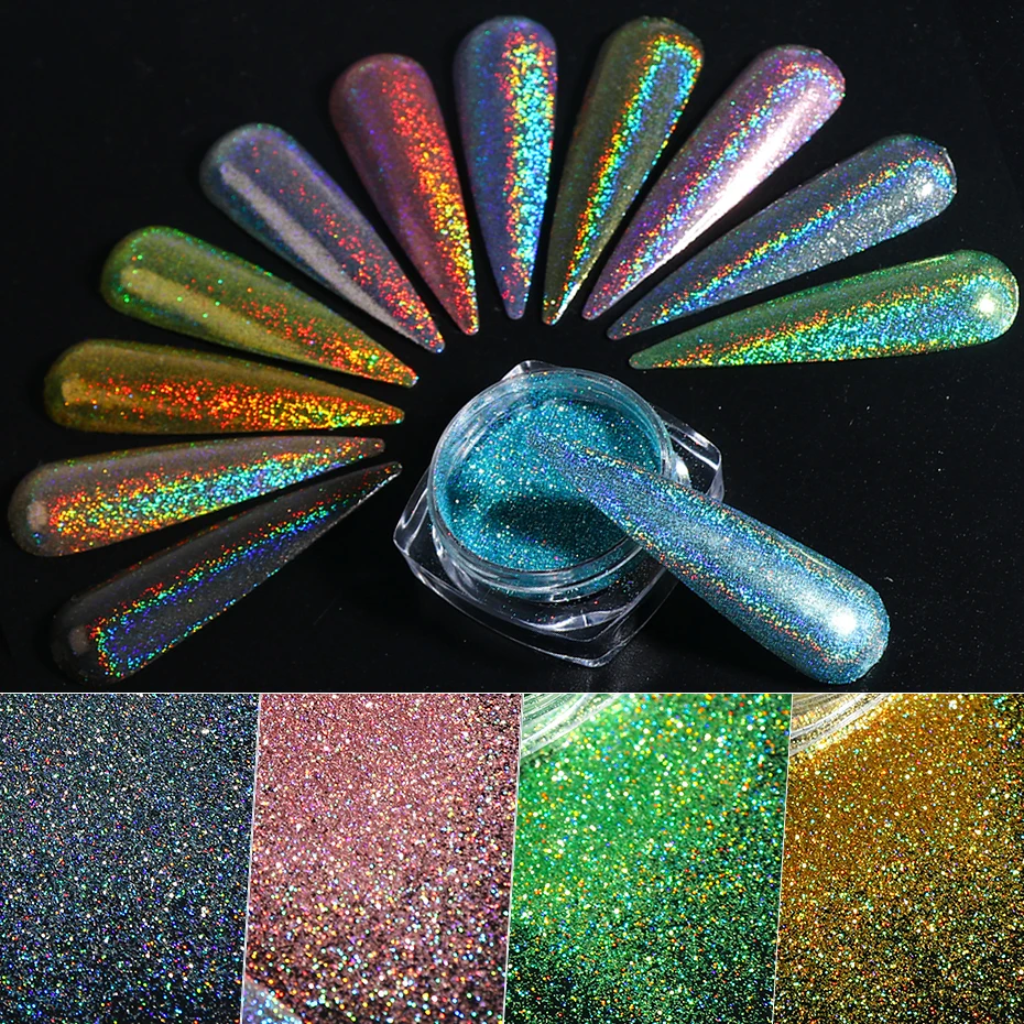 Посылка: 1 флакон (2 цвета в одной бутылке) голографический блестящий для ногтей порошка