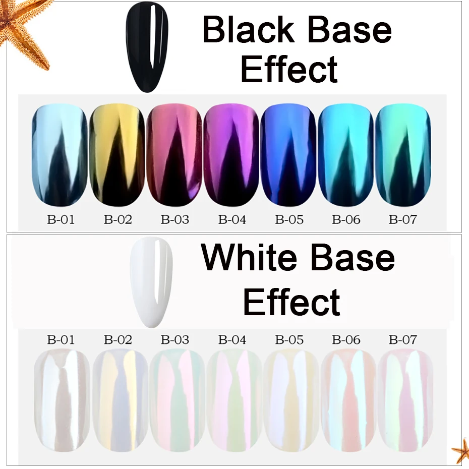1. Подготовьте свои ногти с помощью УФ-базового покрытия, цветного УФ-геля, не вытирающего УФ-верхнего покрытия. (другой верхний слой не может получить зеркального эффекта)