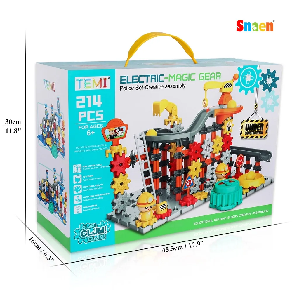 Строительные инженерные игрушки коробка передач Строительный набор, 214 шт. стебель мраморный бег гоночного трека моторизованный спиннинг шестерни слайд w/ 3 мяча, блокировка Обучающие блоки, подарки для детей ясельного возраста мальчиков и девочек