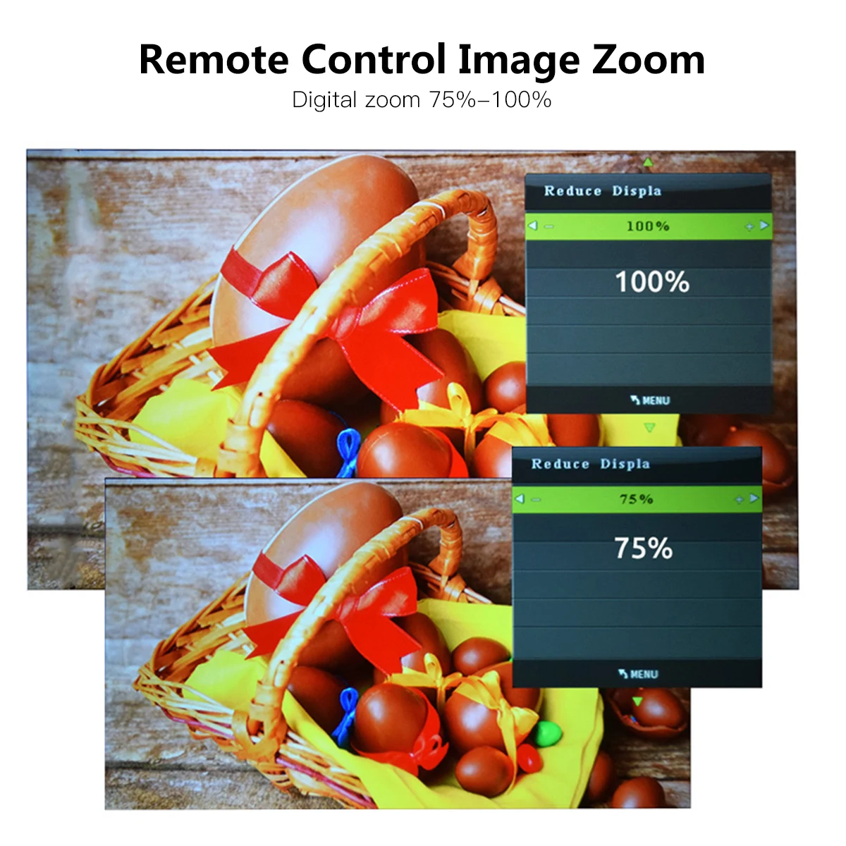 [Отличный дизайн]:Поддержка вертикальной коррекции трапецеидального камня ± 15 °. Регулировка фокусирующего кольца слегка для фокусировки изображения, проста в использовании. Поддержка дистанционного управления зумом изображения (цифровой зум 75%-100%).