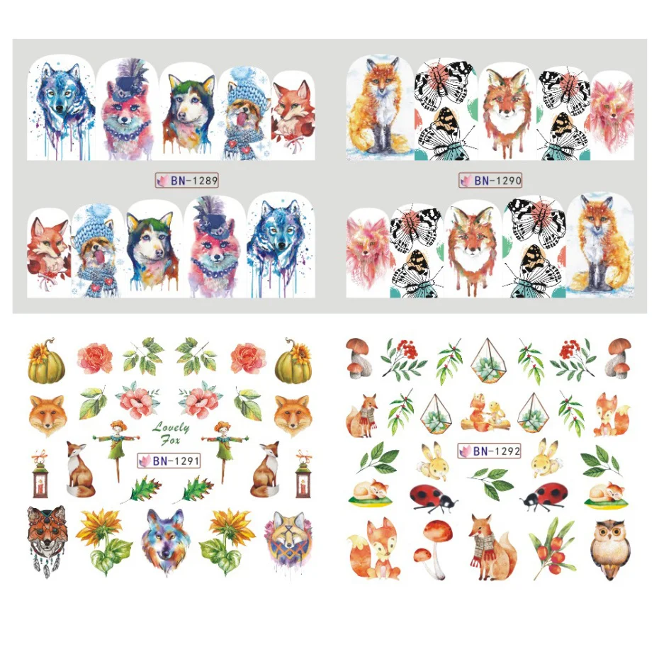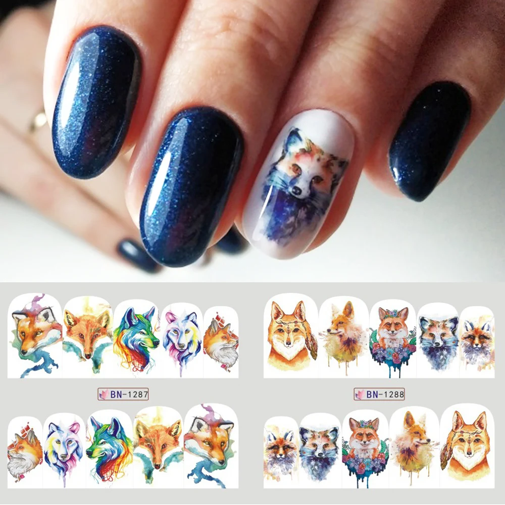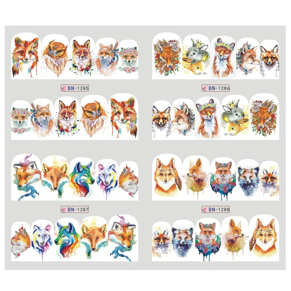 Отзывы о 12 шт. водные наклейки для ногтей Волчья лиса Мультяшные животные милые