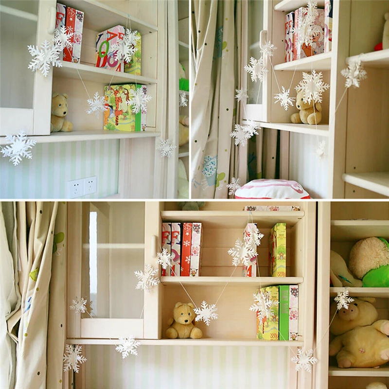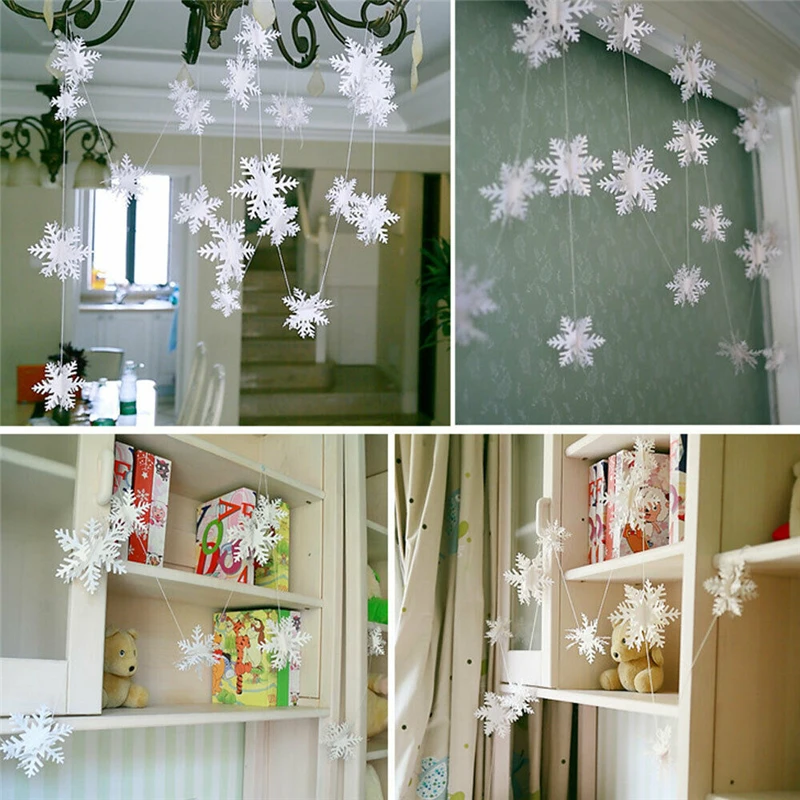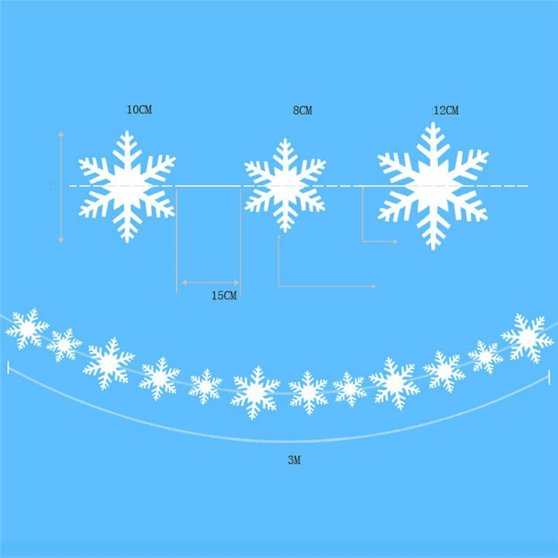 12 шт. в упаковке, 3D белые рождественские орнаменты снежинки фон с рождественской елью висячая веревочная украшения 3 м