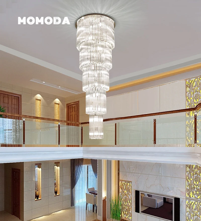 Роскошный светодиодный потолочный светильник, современные хрустальные спиральные круглые люстры из нержавеющей стали, большие лестничные светильники для гостиной