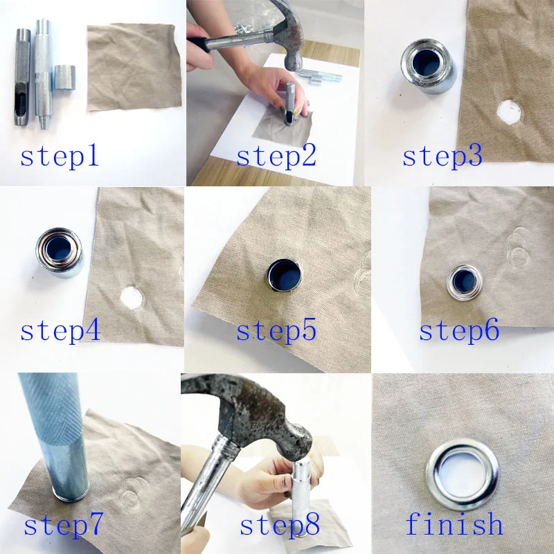 Материал люверсов-латунь, цвет может быть серебристым, золотым, антикварным латунным или оружейным металлом.