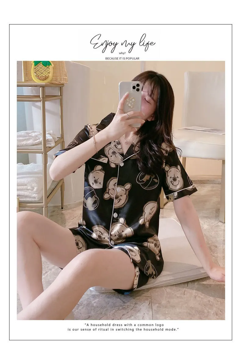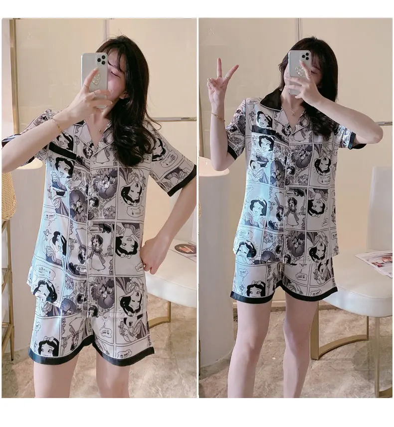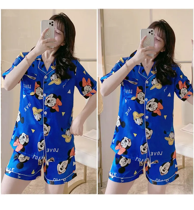Отзывы о Комплект атласной пижамы с изображением Микки и Минни из Диснея летняя женская