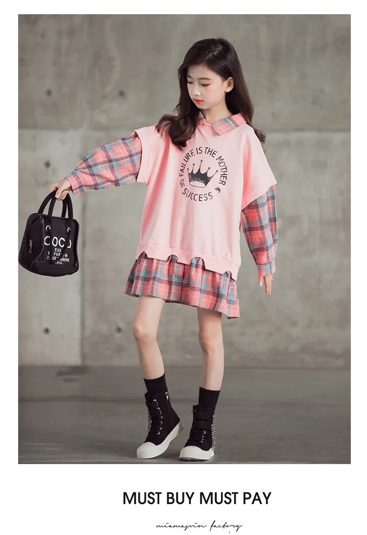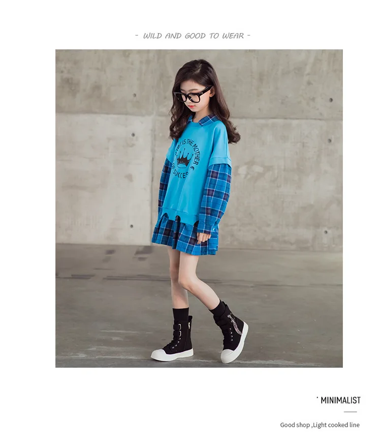Отзывы о Детская одежда новое осеннее клетчатое платье-свитер средней длины худи для