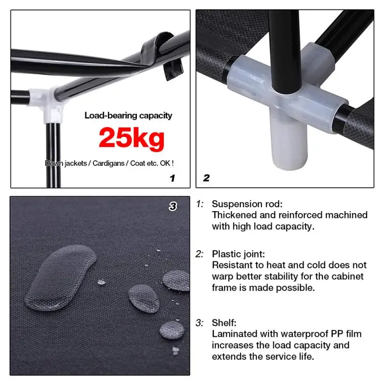 of non-woven fabric and fixed by metal pipes, the cabinet guarantees