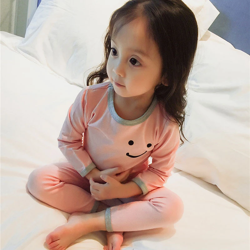 Отзывы о Осенняя пижама для девочек 2020 Детский милый комплект сна с улыбкой | Детская