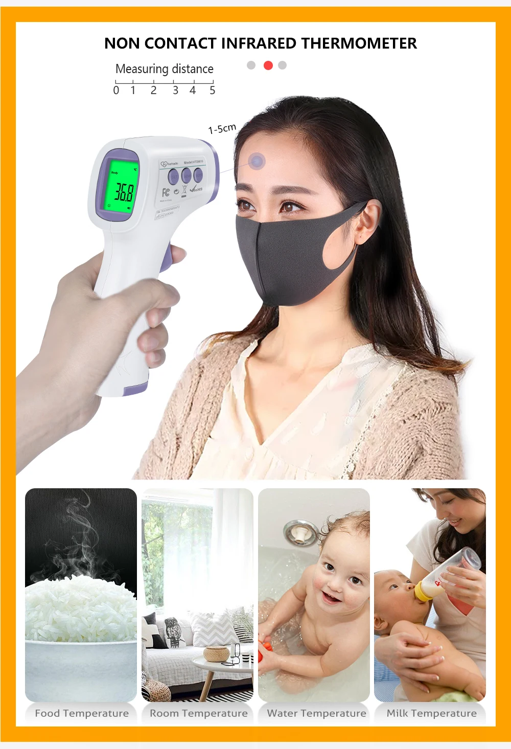 Этот термометр для лба может не только проверить температуру тела, но и горячее молоко для малышей (можно избежать ожогов), еда (под приготовленной пищей неприемлема) и комната (идеально подходит для путешествий)