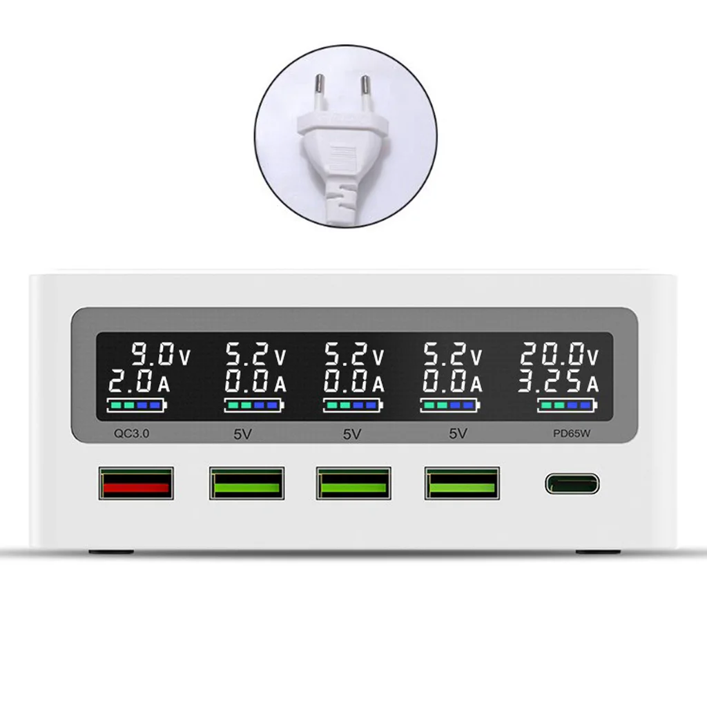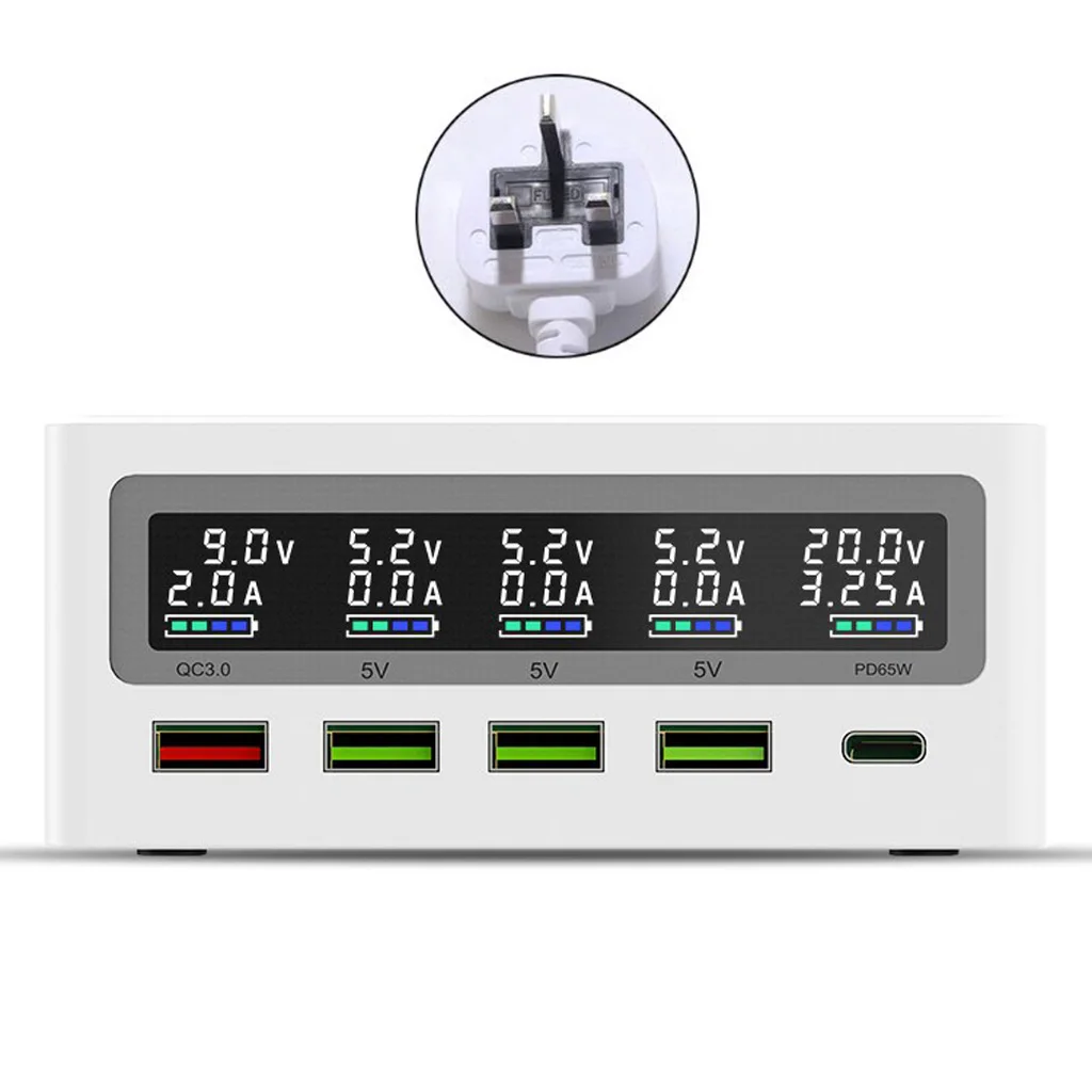 Отзывы о 5-Порты и разъёмы QC3.0 Тип USB C PD 65 Вт Мощность адаптер Qi Беспроводной Зарядное